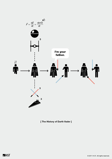 O bé aquest divertit pictograma (extret del blog: el tornillo que te falta) que es centra en la relació del Luke amb el Dark Vader…