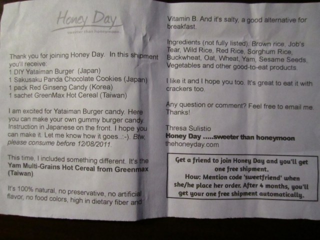 It’s an envelope full of desserts, it’s called “Honey Day“. In this shippment I recived a few surprising things…