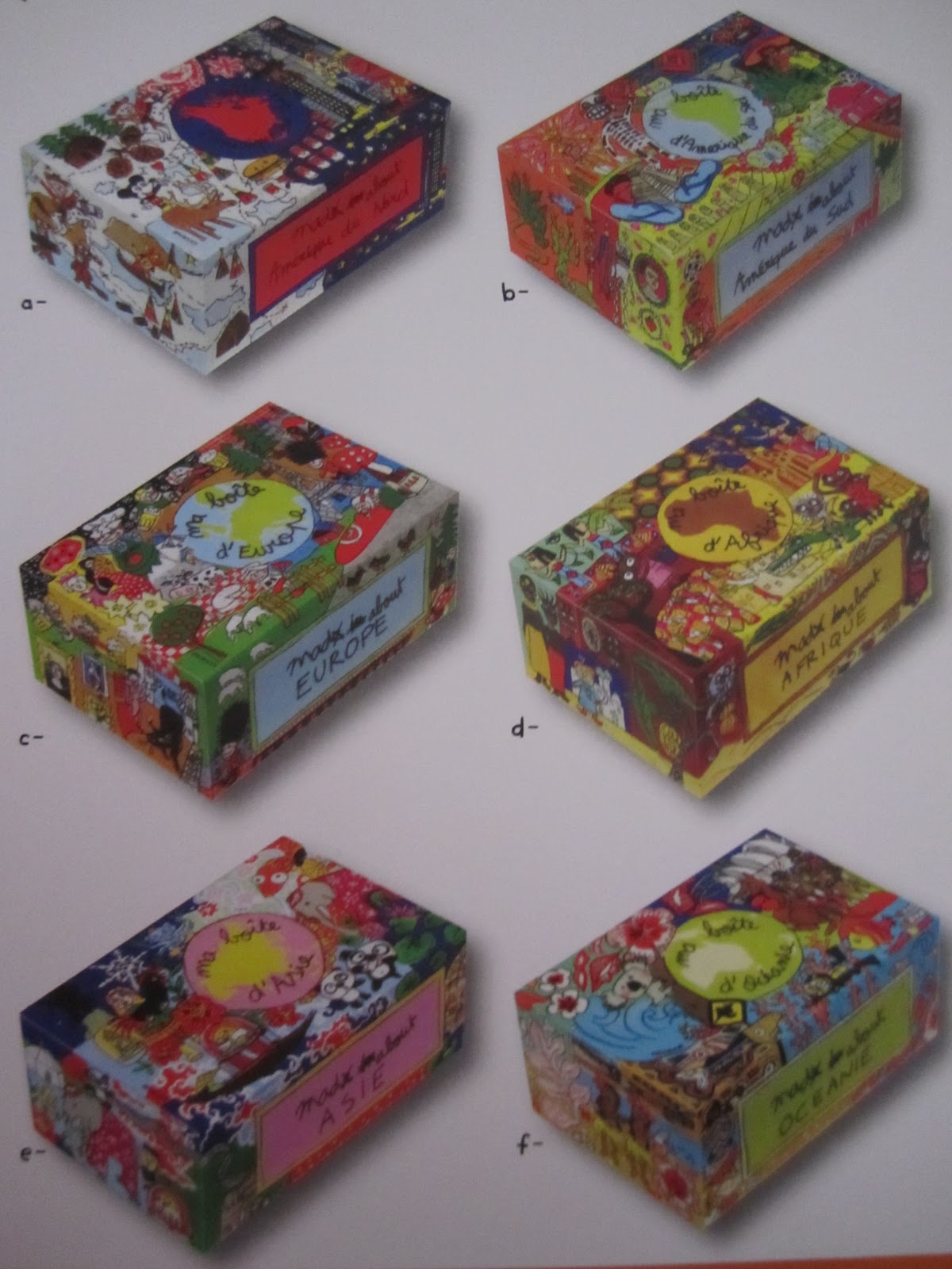 This collection is from all the continents, and each box has the draws of the most symbolic things on them.