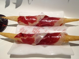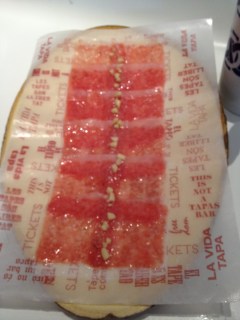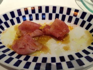 Jamón de toro: Slices of tuna belly painted with Iberian cured ham fat