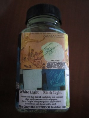 It’s from Noodler’s Ink and it’s called Blue Ghost, it’s an invisible ink that can only be seen in a black light!