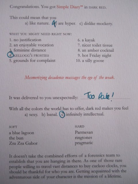 The famous publisher Taschen has created a funny and original diary, called Keel’s Simple Diary, where you don’t have to write all of your success during the day, you only have to mark which option of the given one is more reallistic during your day.