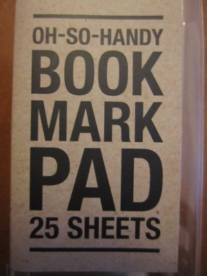 They are from Knock Knock, called Bookmark Pad, and in every pack they come 25 sheets.