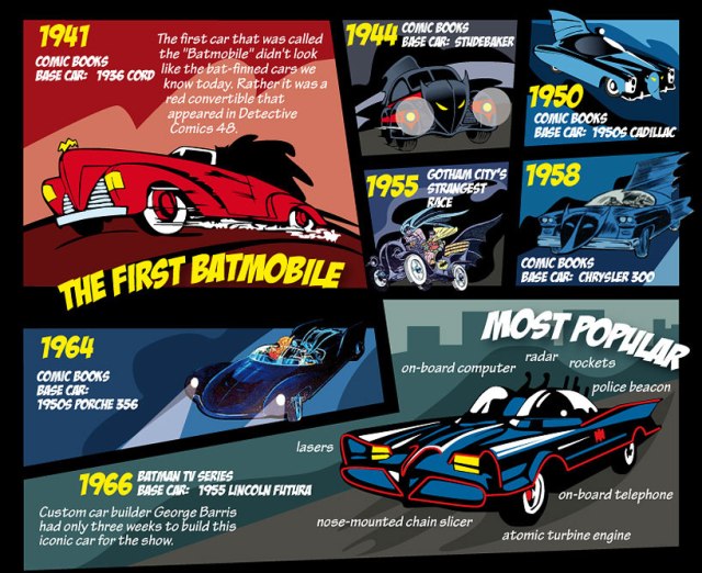 I found this interesting and funny infograph about all the types of Batmobile ever existed, made by Car Insurance.