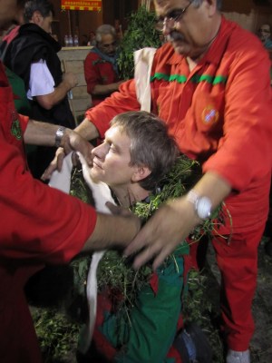A més a més vaig tenir la sort de poder veure com vestien un ple, l’espectacle més esperat de la festa i deixar-li provar les Compeed perquè pogués disfrutar del salt!