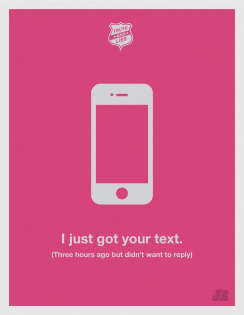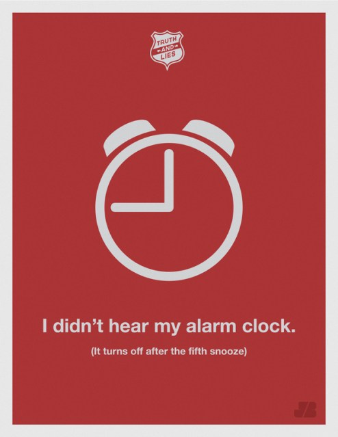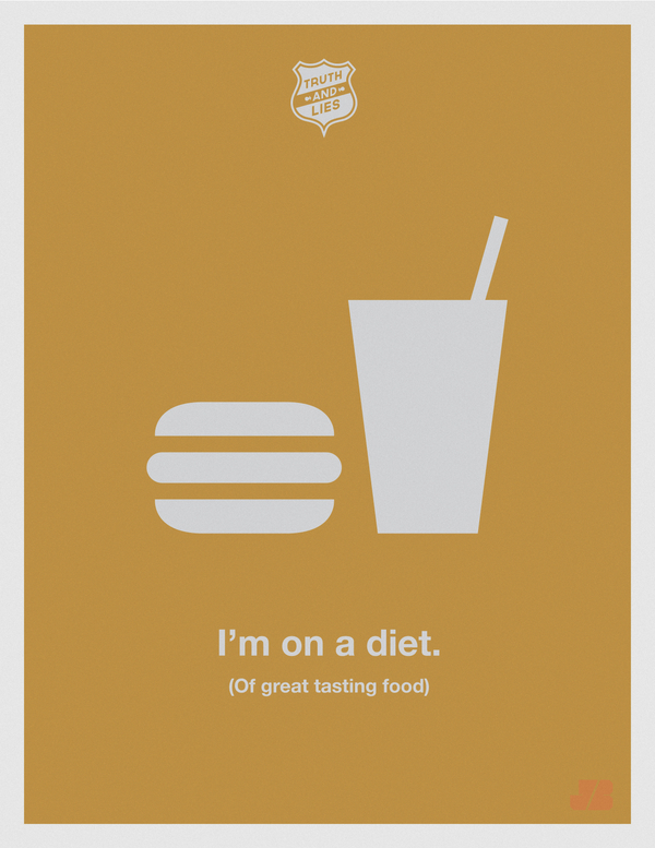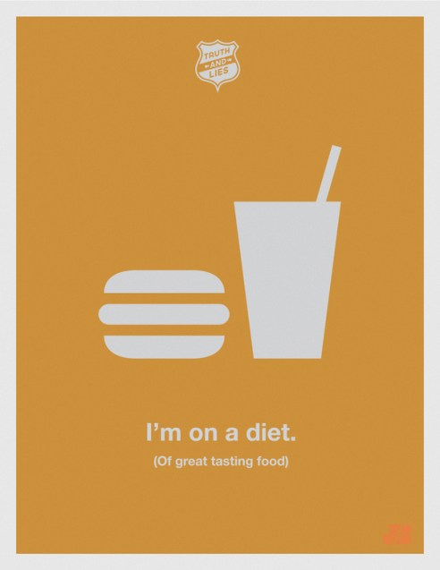 Truth and Lies are some humorous poster taking some of the most common, everyday lies we tell ourselves and hear from others, and bluntly translates them into the unequivocal truth.