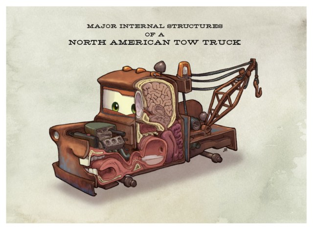 The artist Jake Parker had illustrated the anatomy of the most famous characters of the film; Lightning Mcqueen and Doc Hudson.