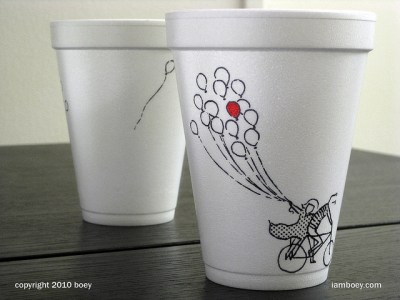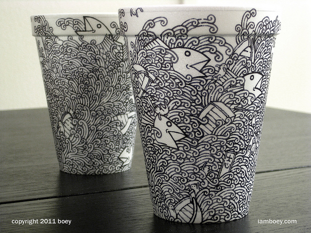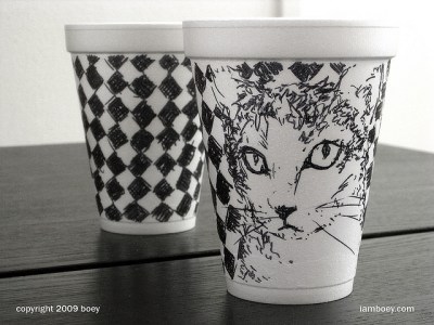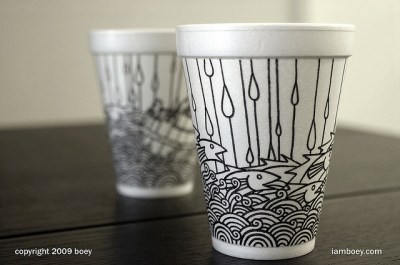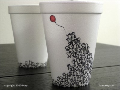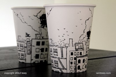 The artist Cheeming Boey uses the white cups we use for the coffee to create some amazing and personalized cups!