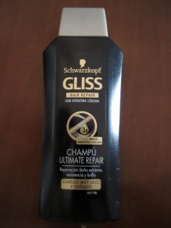 Una petita ampolla de xampú Schwarzkopf Ultimate Repair, per donar resistència, llum i reparar els cabells.