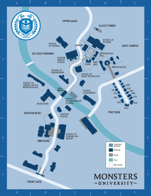 You can take a look at the Monsters Campus map…