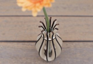 The volume of this vase is created by ten flat pieces held solely with two rings and a test tube.