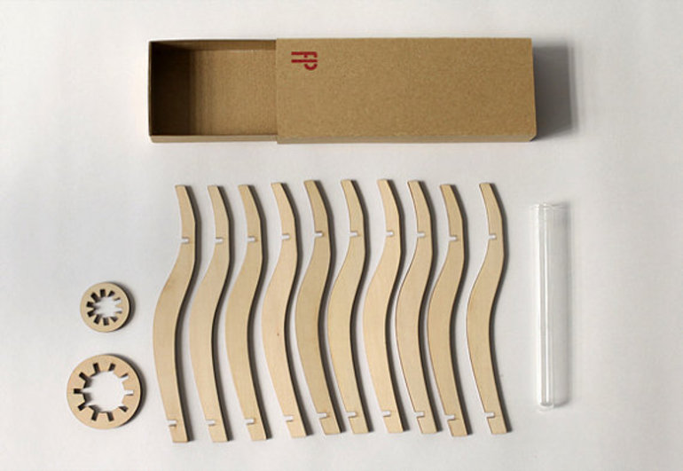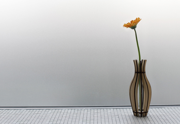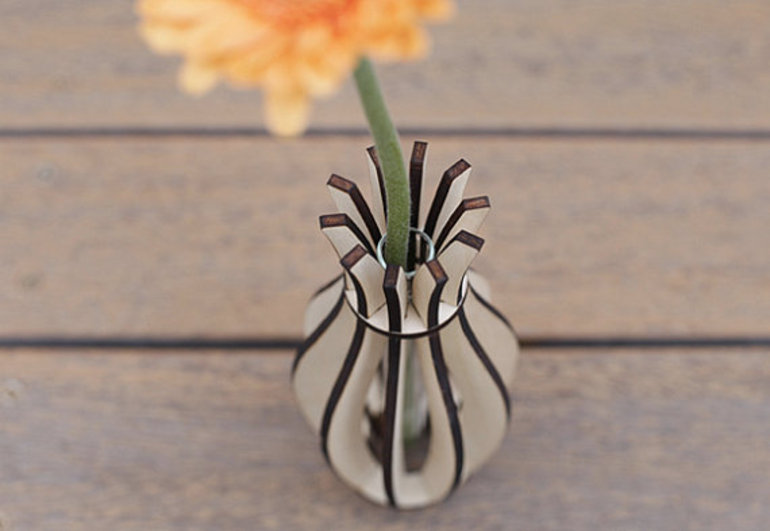 My favourite is the Fin Vase, a flat-packable vase which consists of plywood pieces and a glass test tube.