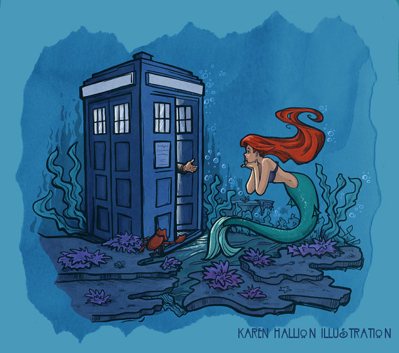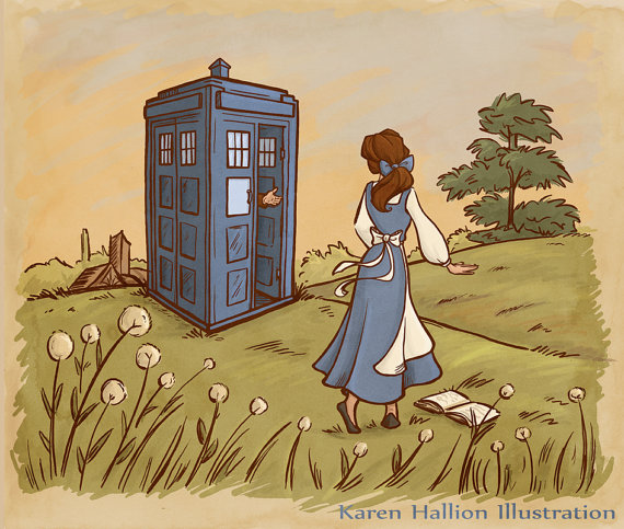I love the illustrations of Karen Hallion mixing the Dr Who cabin with some Disney Princess! 🙂