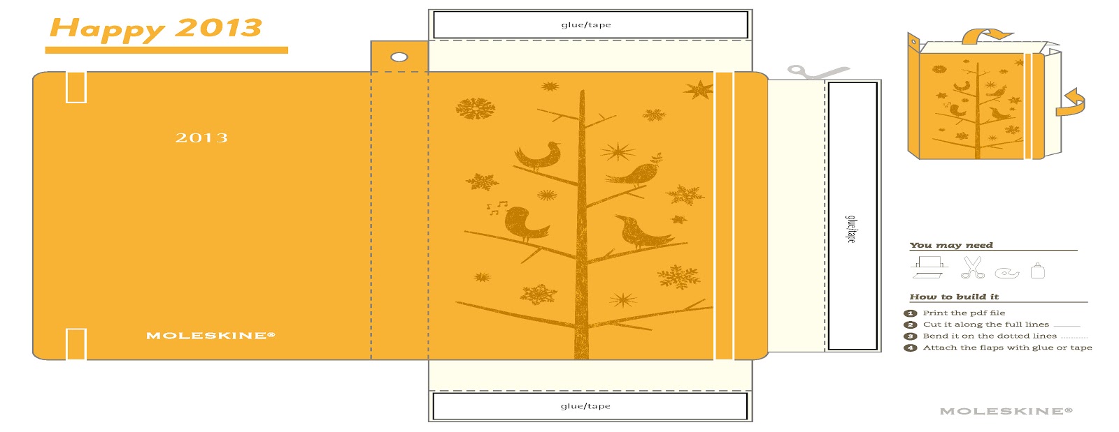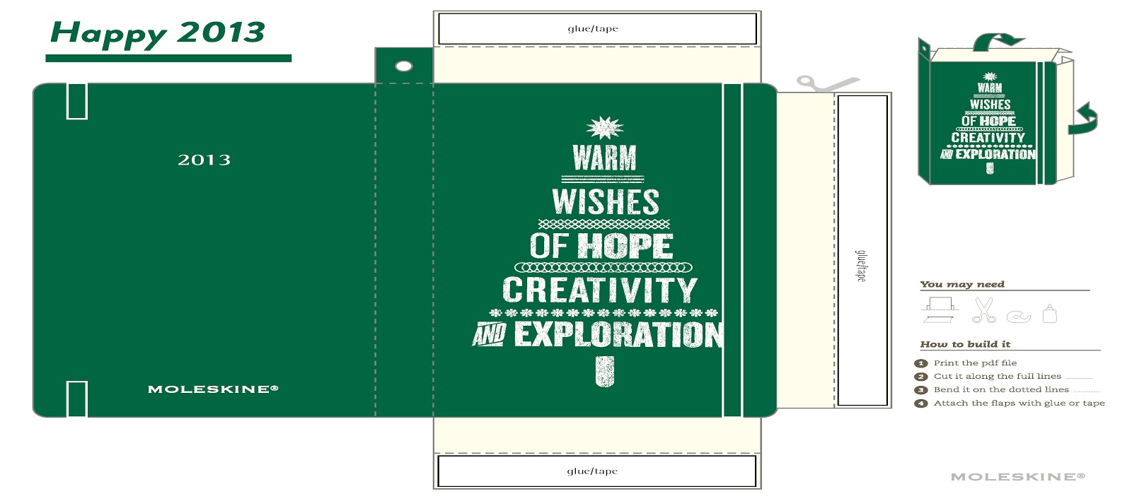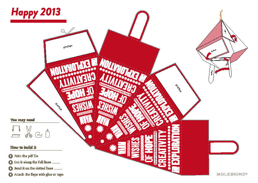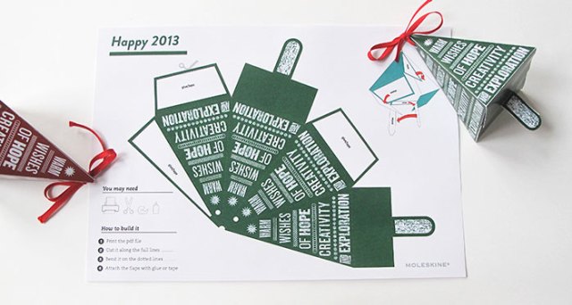Get crafty this festive season with some free homemade decorations. Just head over to myMoleskine and register to download a selection of MSK templates, print them out and cut them up. Then, with a bit of glue and ribbon, your hanging decoration will be ready.
