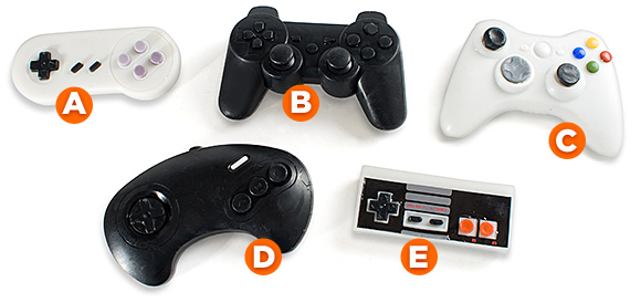 D) SEGA Mega Drive Controller, E) NES Controller