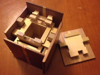 It’s called Secret Box, from the same designers of the Karakuri Boxes. All 6 plates move in this new Secret Box and it takes 6 moves to be opened! 🙂