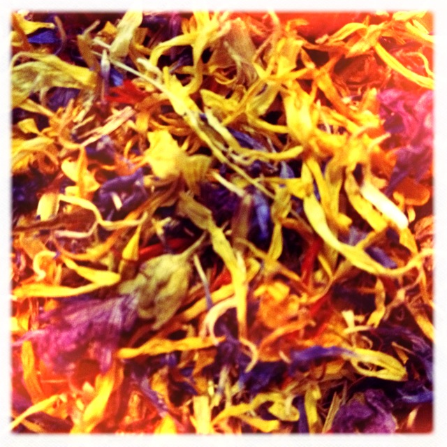 I’ve tried a mix of them; chocolate crunch, dried raspberries, nuts, tomatoe crunch and my favourite… flower petals. It comes with a big tube full of flowers with all the colours you could imagine and with a recipe to enjoy them!