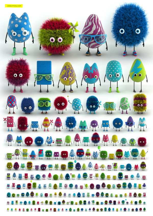 One Thousand Ksoids Project is an experiment on procedural generation of huge amount unique characters based on relatively small amount of creation rules.Created by Danil Krivoruchko.
