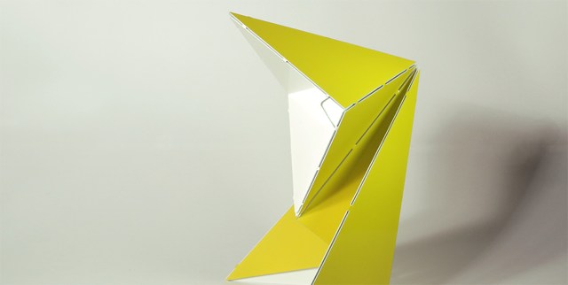 The Origami Lamp, created by Belt+Sund table lamp is made from a single sheet of metal. It is folded into shape by hand, with indentations indicating the pattern. Even the lamp-holder itself is precut and only needs to be folded up. Subsequently the electrical components and light fixtures are inserted, before the lamp’s folding process is finished.