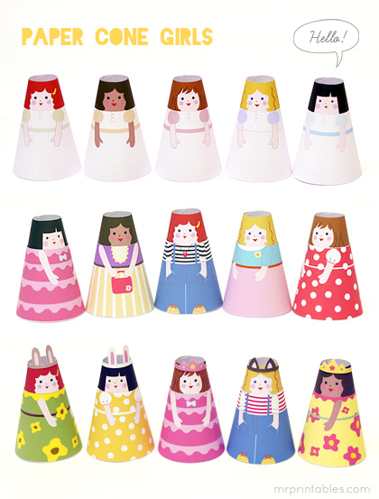 Try with the original Printable Paper Dolls Cone Girls by Mr. Printable, they are nice and really easy to do!