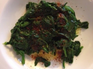 For starter we eat spinachs with some drops of Red Wine Vinegar and of course some chilli spices!