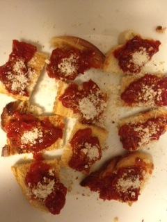 At first we make a little appetizer with the Chunky Red Pepper, bread and some parma cheese.