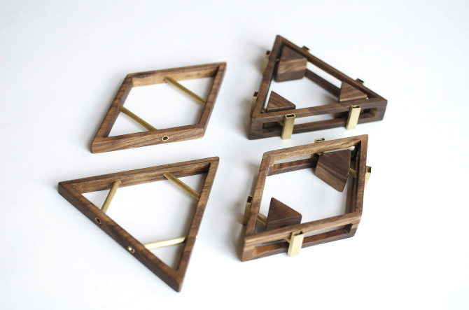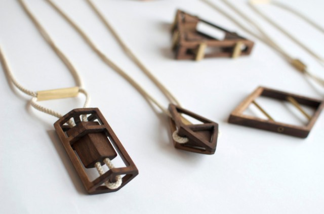 Some jewellery are more pieces of art than simple jewellery, like the collections Sticks+Stones by Simone Ferkul. Characterized by angles, intersecting elements, and craft, Sticks+Stones reexamines traditional crystal models through material capacity. This fascination with structure becomes the essence of the collection, while the experimentation of walnut’s innate properties becomes the driving force in creating these wearable design objects.
