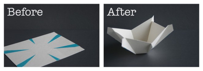 This project from Roberto Magno at Kickstarter allows you to create a bowl with a single piece of flat cardboard with a couple of cuts, a few crease lines, and some adhesive. With a few folds, the rectangle transforms into a bowl. The bowl it will be 100% recyclable. Even the adhesives are recyclable.