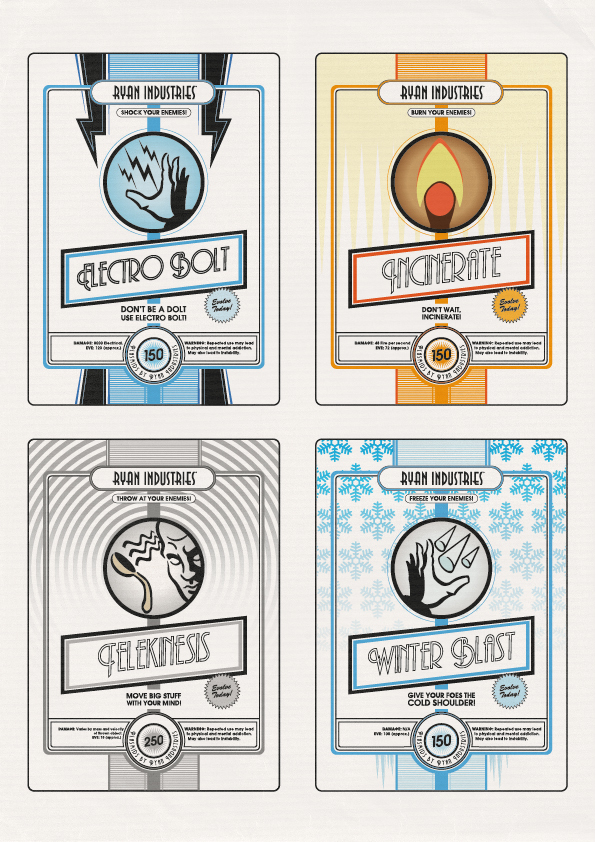 Take a look at these posters (Plasmid Posters) created for the game Bioshock by Andy Gimson…