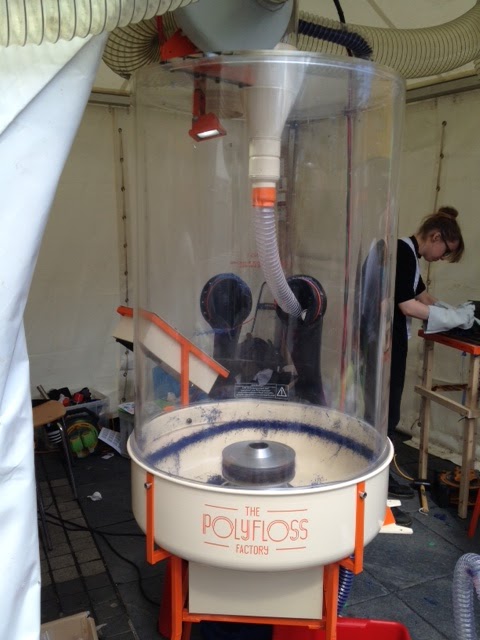 The Polyfloss machine works on the same principle as a candyfloss machine.