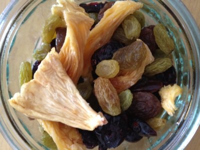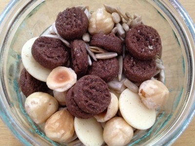 Third we try the Tutti Frutti with blueberry infused cranberries, pineapple, cherry infused raisins and green raisins. We don’t like it very much, but we can change it for the next shippment!