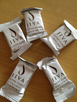 The Jiva Coffee cubes are made with Colombian coffee mixed with raw, unrefined cane sugar made with no preservatives or artificial additives. You can find it with different flavours… Mocha, Caramel, Hazelnut, French Vanilla and of course the Classic.