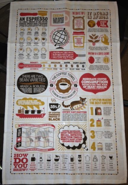 The designer is Stuart Gardiner and his handy tea towel contains all the facts and tips you need to brew a perfect cup of black coffee. And of course is premium organic cotton! 🙂