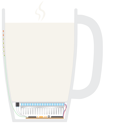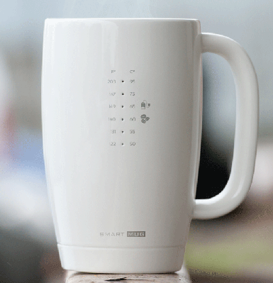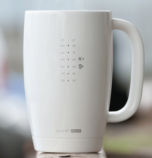 You may have look at the Smart Mug Kickstarter project, because the Smart Mug determines the temperature of the liquid inside the mug and indicates the right time to start enjoying your favourite beverage!