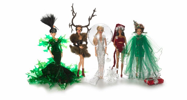 Stephen Jones has teamed up with Selfridges to create couture looks for a series of one-of-a-kind Barbie dolls to be sold exclusively at Selfridges in London. The British milliner has designed five bespoke looks for Barbie for the holiday season: Happy Holly; Toffee Ice; Santa Baby; Snow Globe, and Christmas Tree.