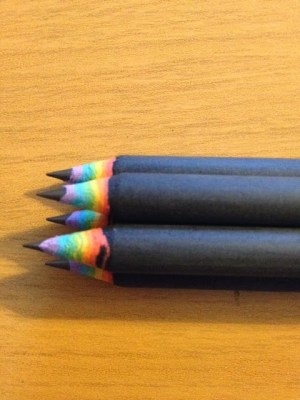 They are made from eco-friendly recycled paper and they create a little rainbow every time you sharp them! 🙂