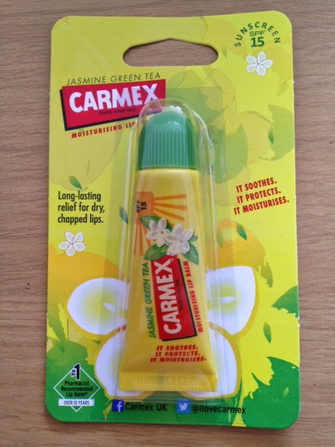 Carmex lipstick, the Jasmine Green Tea edition.