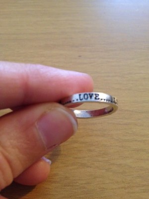 They allow me to discover their products and I choose this ring; it’s silver plated with the word Love engraved on it!