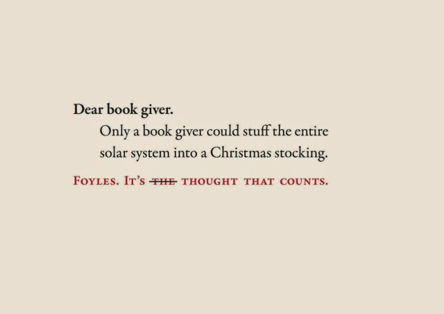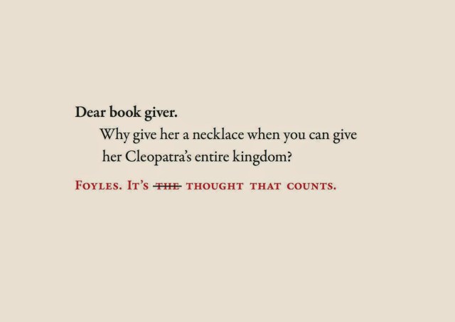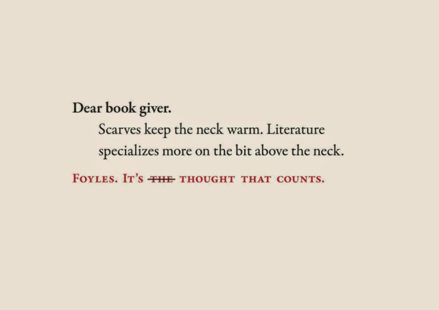 Advertising · Quotes Foyles Advertising November 14, 2014November 17, 2018 Varietats Foyles is one of my favourite bookshops in London, so when I find these quotes for the Christmas presents I want to share them with you! Which is your favourite one? Share this: Share on X (Opens in new window) X Share on Facebook (Opens in new window) Facebook Like Loading... Related Share this: Share on X (Opens in new window) X Share on Facebook (Opens in new window) Facebook Like Loading...