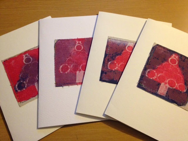 I made a tree with some things I had at home, and then printed the photo on a fabric and sewed it on the card.
