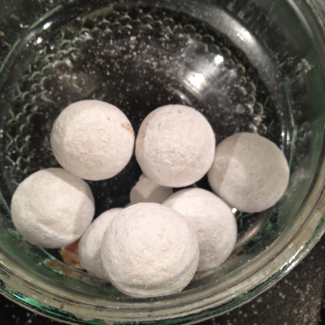 Apart from the happiness of receiving a present on the post, these snowballs are delicious! With milk chocolate in crisp sugar shells dusted with icing sugar.