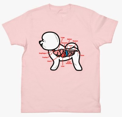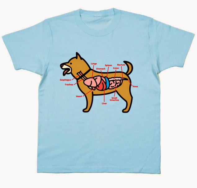 The original Yaegashi Wang Ming t-shirts show us some part of the body of our typical pets, and teach us their names and how are located inside their body.