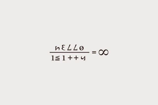 Numbers and symbols associated with math formulas were used to spell “hello kitty”, with “=∞” simultaneously expressing “infinity” and “Kitty’s ribbon”