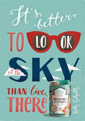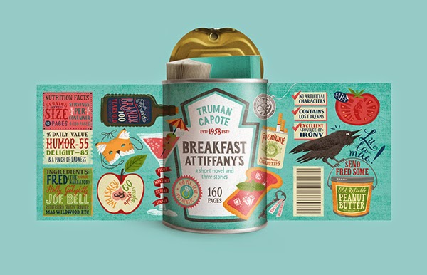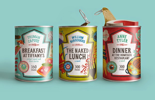 includes 3 books (“Breakfast at Tiffany’s”, “Naked Lunch” and “Dinner at the Homesick Restaurant”) in a special packaging. The 3 books with edible names contain