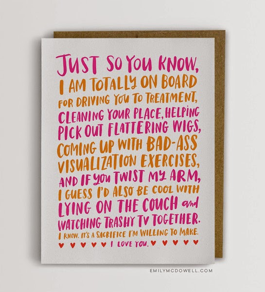 Cancer · Cards Emily McDowell, Empathy Cards May 8, 2015November 17, 2018 Varietats Emily McDowell, an artist and cancer survivor has created these Empathy cards. They tell the truth without reservations, the only thing you really need if you have cancer, not the typical sugary cards you can buy anywhere. Take a look… Share this: Click to share on X (Opens in new window) X Click to share on Facebook (Opens in new window) Facebook Like Loading... Related Share this: Click to share on X (Opens in new window) X Click to share on Facebook (Opens in new window) Facebook Like Loading...