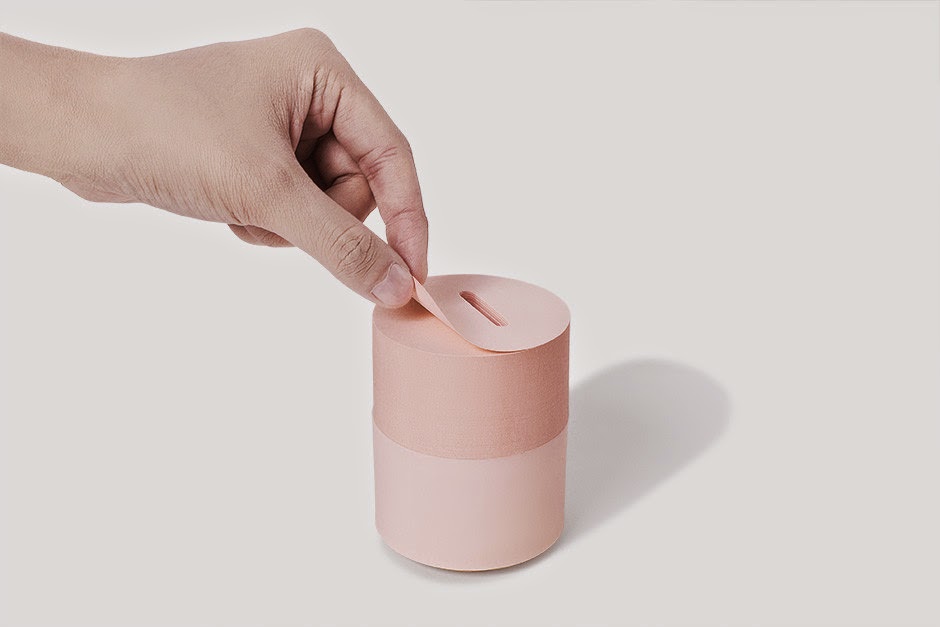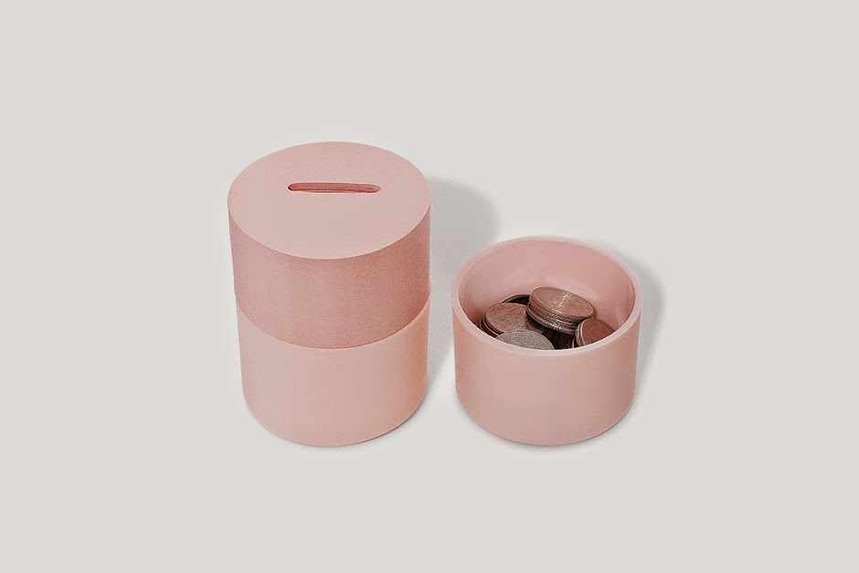 The upper half of the Memo Bank is a stack of memo notes and the lower half is a coin container. Drop a coin every time you peel off a memo. As the height of your memo goes down, you become closer to your saving goal.