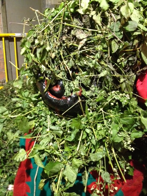 Here you can see a full “Ple” dressed, and at the top of the mask they wear more Clematis vitalba with a few more petards.