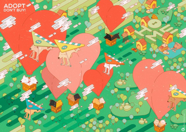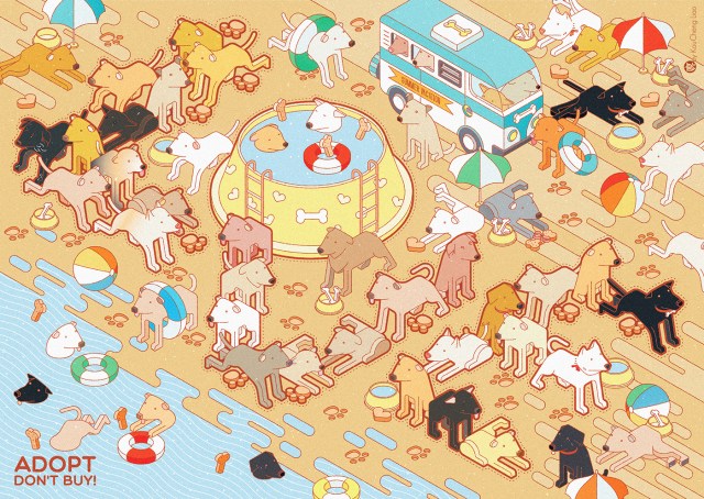 All the cats I had at home where adopted and this is what the artist KuoCheng Liao wants to share with us with these amazing dog illustrations. There are so many pets with no home that buying them in a shop it seems so wrong…