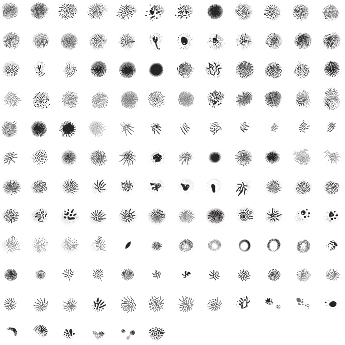 To form the glyphs, a tiny amount of ferrofluid – a kind of magnetic ink, originally developed by NASA in the 1960’s – was placed between two glass plates and subjected to a combination of spinning vertical and horizontal magnetic fields. The result is an array of complex hieroglyphics and shapes – each one as unrepeatable as a snowflake – that simultaneously call to mind ancient indigenous markings or symbols from science fiction.
