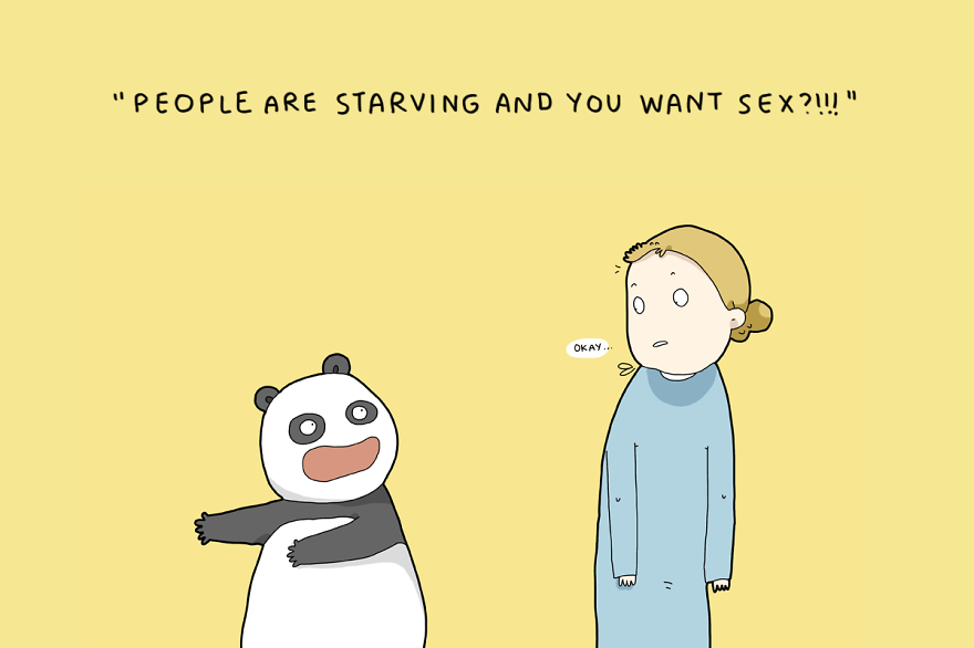 Humor Excuses Pandas Give Not To Have Sex by livingstov October 15, 2015November 17, 2018 Varietats Some original and funny illustrations (and of course, excuses!) that a “Panda” can use to not have sex. Created by livingstov. The source is Bored Panda. Share this: Click to share on X (Opens in new window) X Click to share on Facebook (Opens in new window) Facebook Like Loading... Related Share this: Click to share on X (Opens in new window) X Click to share on Facebook (Opens in new window) Facebook Like Loading...
